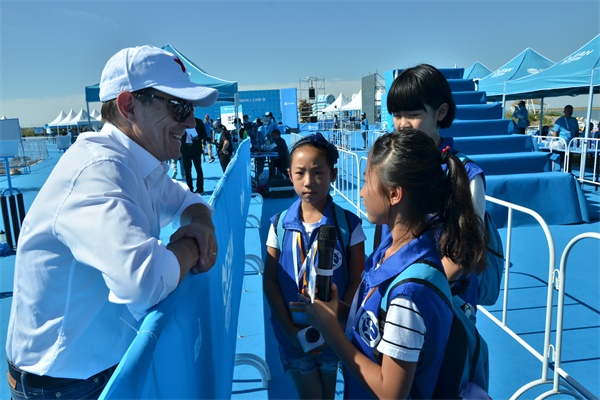 "图为新华小记者采访国际赛事协会会长Le Lostec Eric"