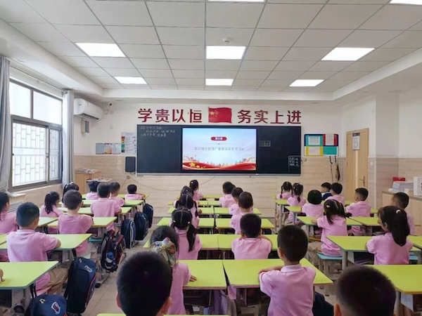 童声唱响倡议推普周,呼吁大家参与“推广普通话,书写规范字”的行动中来,做推普小达人。