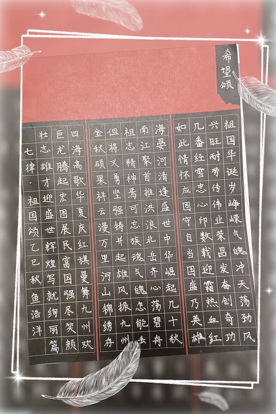 汉字是中华民族数千年的文化瑰宝,写好中国字是传承中华文化的重要方式。为营造“讲普通话,写规范字”良好的校园文化氛围,“书写规范字”——优秀作品展活动如火如荼地进行,通过书写,学生们深刻感受到了“ 语通九州 ·文润中华”的魅力。