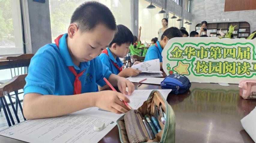 “跟一个人安静阅读不同,大家聚在一起看书答题,氛围更放松。”章译诺说。“我第一次知道了车前草名字的由来,原来它还是一种药材。”金华市宾虹小学五(9)班徐方宜常来校门口的“悦读吧”看书,工作人员都很熟悉这个爱看书的小姑娘。第一次参加阅读马拉松,她花了半个多小时看完了书,仔细做好20道挑战题。