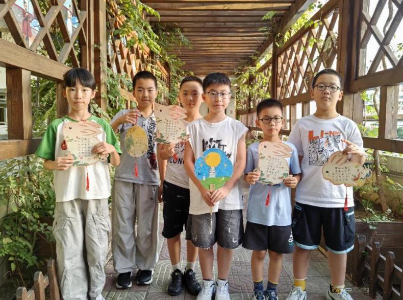 在“巧手绘中秋”环节,空白团扇成了挥洒创意的画布。同学们手执画笔,描绘出一个个独特的中秋故事:皎洁的明月高悬于缥缈云海,温馨的家人围坐共享团圆,还有灵动的玉兔、飘逸的嫦娥与芬芳的桂花点缀其间。每一把团扇都是一首无声的诗,承载着孩子们对传统佳节最纯真的理解与最美好的祝愿。