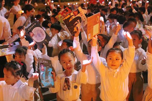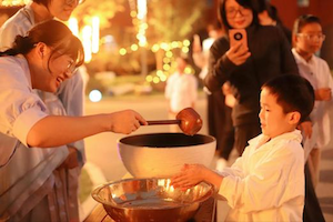 孩子们手捧明灯,走过“仁、义、礼、智、信”五道启蒙之门。
