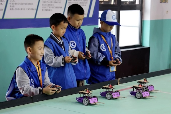 在机器人与3D打印体验区,小记者深入编程机器人赛场,通过图形化编程,灵活操控机器人进行“坦克越障”与“足球对战”,在紧张的团队对抗中,他们的逻辑思维与协作精神得到了充分锻炼。