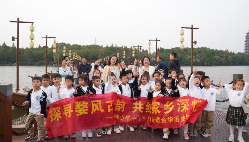 为感受家乡的千年魅力,近日,金华市环城小学一(1)班麦苗中队开启了一场“我爱家乡金华”主题班级活动。同学们走出教室,沿着精心设计的行程,在城市发展、非遗艺术与历史长河中,沉浸式触摸家乡的温度与脉搏。