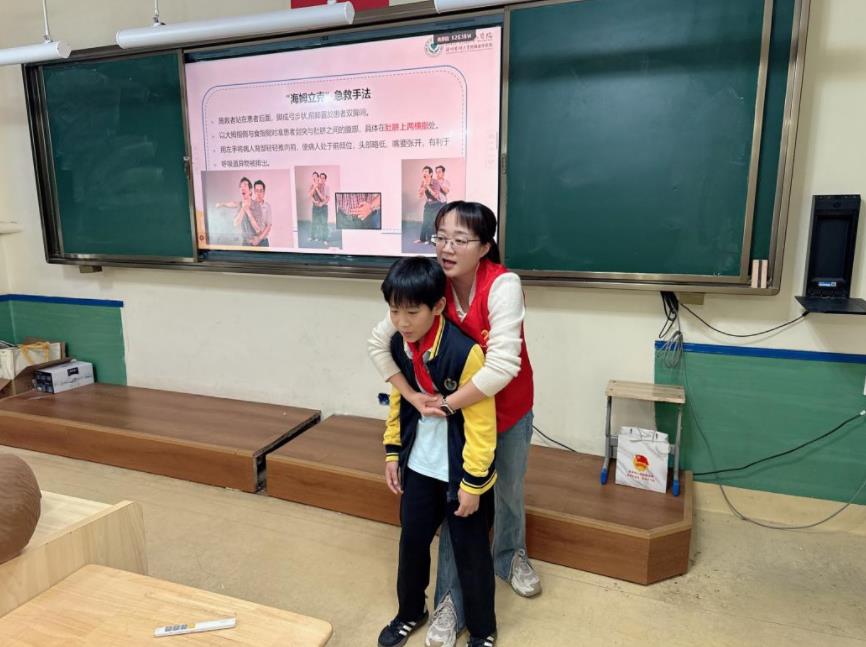 “同学们,如果你看到有人被食物卡住喉咙,说不出话,脸憋得通红,该怎么办?”课程一开始,“急救老师”提出的问题就紧紧抓住了大家的心。