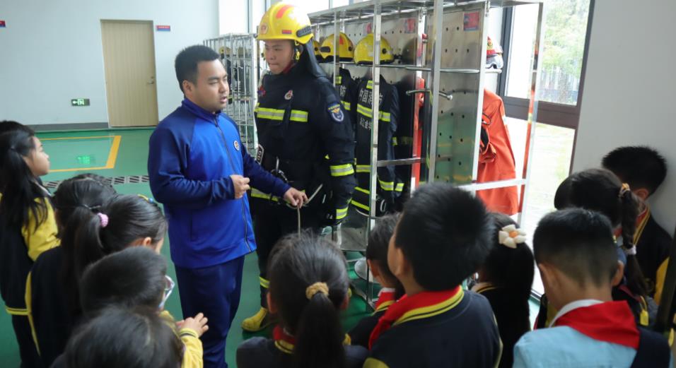 紧接着,消防员叔叔展示了如何穿戴消防服。那厚重的消防服,不仅是消防员们在火场中的“保护盾”,更是他们勇敢无畏的象征。同学们围在旁边,目不转睛地看着消防员叔叔熟练地穿上消防服,戴上头盔,整个过程一气呵成。随后,几位勇敢的同学在消防员叔叔的帮助下,也尝试穿上了消防服。当他们笨拙地穿上那沉重的装备时,才真切地感受到了消防员叔叔们工作的艰辛与不易。每一件装备都承载着生命的重量,每一次出警都是与死神的较量。