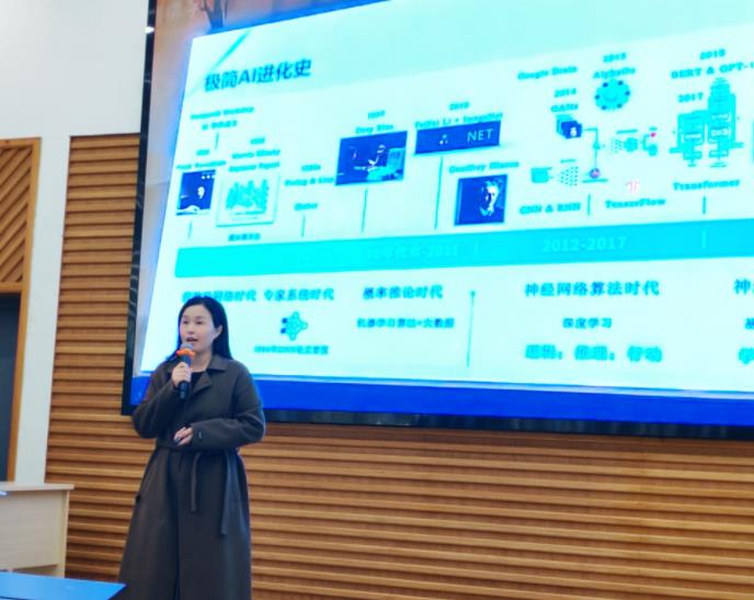 刘玲娟老师的主题汇报《AI赋能,构建智慧课堂》,从极简Ai的进化史到解锁了教——学——评的创新密码,让聆听的老师倍感收获。刘老师认为在AI融入教学的初期,有必要结合AI的特色,对“教”“学”“评”三者的关系及认识予以重新定位。AI融入教学的“教”,由原先的“师-生”二维对话模式,转为“师-机-生”的三维模型;AI融入课堂的“学”,指向让学生的学习拓展更多角度,提升更多空间;AI的嵌入,让“评”变得更及时,反馈更加个性化。