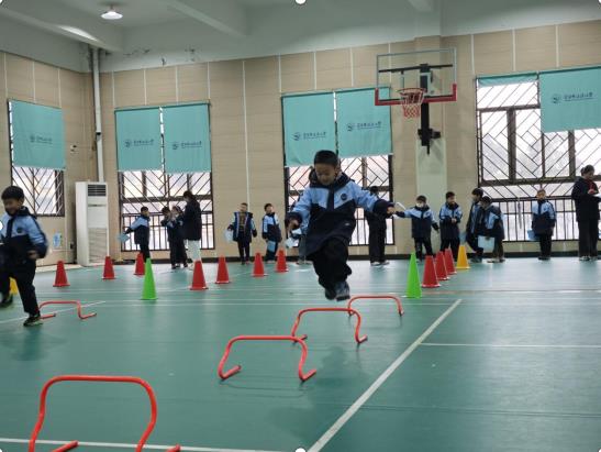 活力能量站以书中角色的冒险经历为蓝本,设计“跨越障碍传书香”“平衡接力续故事”等情景化体能游戏。小朋友们像书中勇敢的主角般,灵活绕过标志盘、平稳完成接力跑、默契配合团队挑战,在奔跑与协作中锤炼体能、培养毅力。运动场上,欢呼声、加油声此起彼伏,小朋友们挥汗如雨却笑容灿烂,展现出江滨学子活力满满的精神风貌。