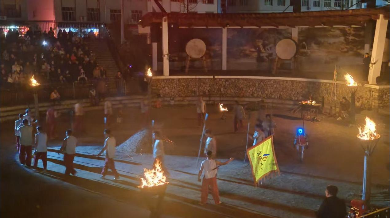 炼火的高潮部分无疑就是踩火,勇士们手持钢叉赤脚穿越火坛,表演“十字插花”等高难度动作,分三堂逐渐踏平火山,预示着新的一年大家都平平安安。最后,所有观众有序排队进入火坛,参与体验“走平安火”环节,脚踩余火表达祈福,感谢火神。感受到火坛火热的高温后,我低头看了一下勇士们被炭火染黑的脚丫子,惊讶于普通民众赤脚穿越火坛却不会烫伤,惊讶于火苗飞起好几层楼那么高真的壮观,惊讶于这项非遗的神秘技艺。