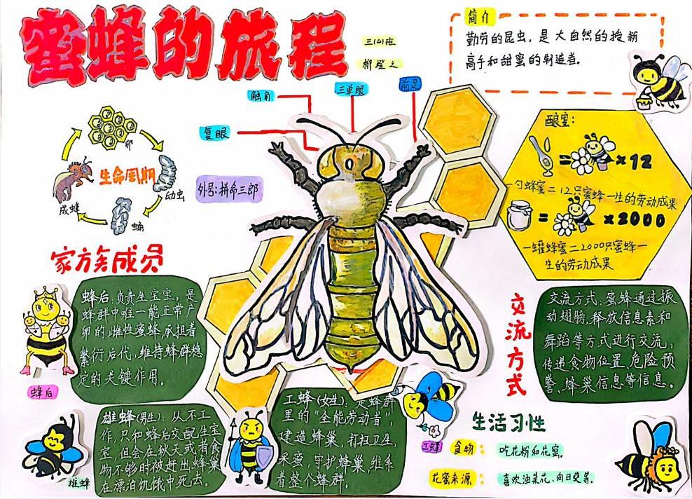 在众多笔记中,一份题为《蜜蜂的旅程》的作品格外吸睛。小作者柳橙之通过云端学习,清晰梳理出蜜蜂家族的“分工图谱”:蜂后负责产卵繁衍,雄蜂承担交配使命,工蜂则包揽采蜜、筑巢、哺育幼虫的全部劳作,环环相扣、井然有序。笔记中还特意标注了“一勺蜂蜜=12只蜜蜂一生的心血”这样的趣味冷知识,字里行间满是触动:“原来每一滴香甜的蜂蜜,都藏着无数蜜蜂的辛勤付出,它们真是大自然了不起的‘工程师’!”