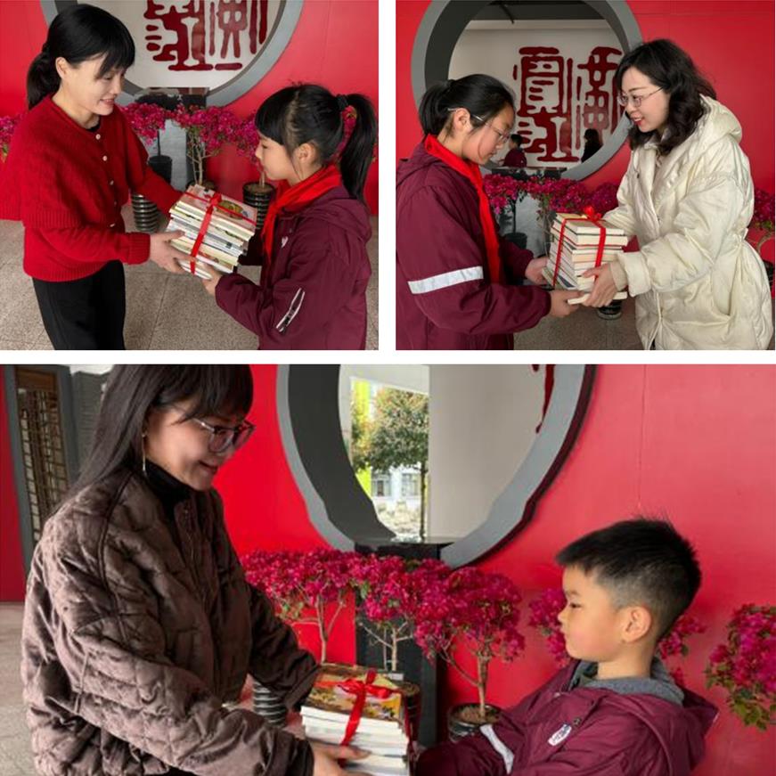 本次活动经各年级自主报名、学校层层筛选,共12个班级成为新学期“漂流图书馆”参与班级。总校长余艳双、校长朱艳文和副校长方素仙亲临现场,为入选班级授书。一摞摞精心甄选的图书,从经典童话的浪漫想象到科普读物的奇妙探索,从文学佳作的文字之美到本土文化的底蕴传承,每一本都承载着金华市图书馆的用心耕耘,更寄托着学校对孩子们阅读成长的殷殷期许。当崭新的图书交到班级代表手中,孩子们眼中闪烁的期待与欢喜,成为校园里最动人的风景。