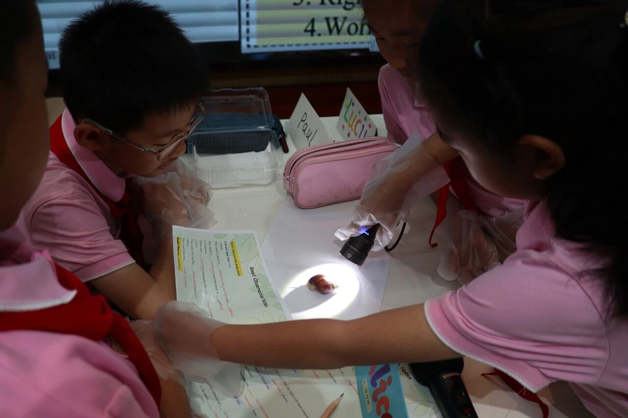 王园老师执教的Snails(科学·三年级)课程以“认识蜗牛”为核心学习任务,围绕“观察—提问—验证—表达”的科学探究路径展开。课堂中,学生通过真实观察与问题驱动,逐步建构对生物特征的认知,并在交流与记录中自然生成语言表达。在这一过程中,教师并未将语言作为单独教学目标,而是将其嵌入科学探究之中,使英语成为支撑思考、表达发现的工具,促进认知发展与语言发展的同步发生。