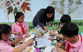 李亚娟老师执教的Plant Pounding Art(劳动·四年级)课程以植物拓染这一传统工艺为载体,构建“体验—操作—表达—分享”的学习路径。学生在材料选择、敲拓实践与成果呈现的过程中,持续进行英语表达与交流,实现“做中学、用中学”。 课堂不仅关注技能习得,更强调在真实任务中激发学生表达意愿,使语言在行动中生成,在交流中完善,体现出学科融合背景下语言学习的实践价值。
