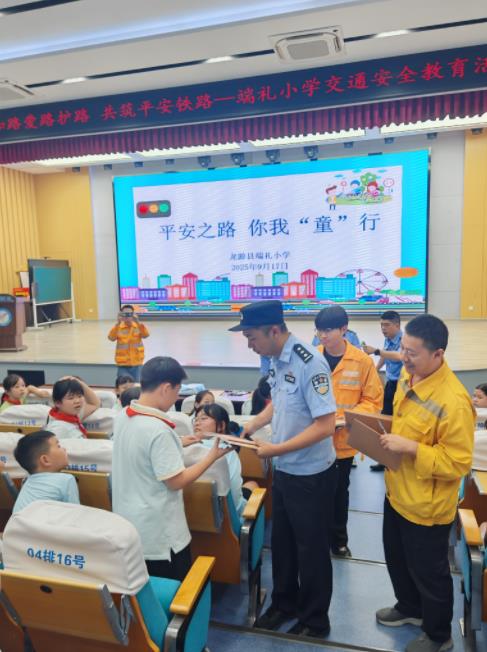 为进一步增强青少年铁路安全意识,营造平安和谐的铁路运输安全环境。9月17日,杭州铁路公安处龙游站派出所民警联合金华高铁综合维修基础设施段、金华车务段、杭州工务段等相关部门走进龙游县端礼小学,开展了一场主题"群策群力护线路,知法知规守平安"的铁路安全知识宣讲活动,为师生们送上了一堂生动实用的安全教育课。