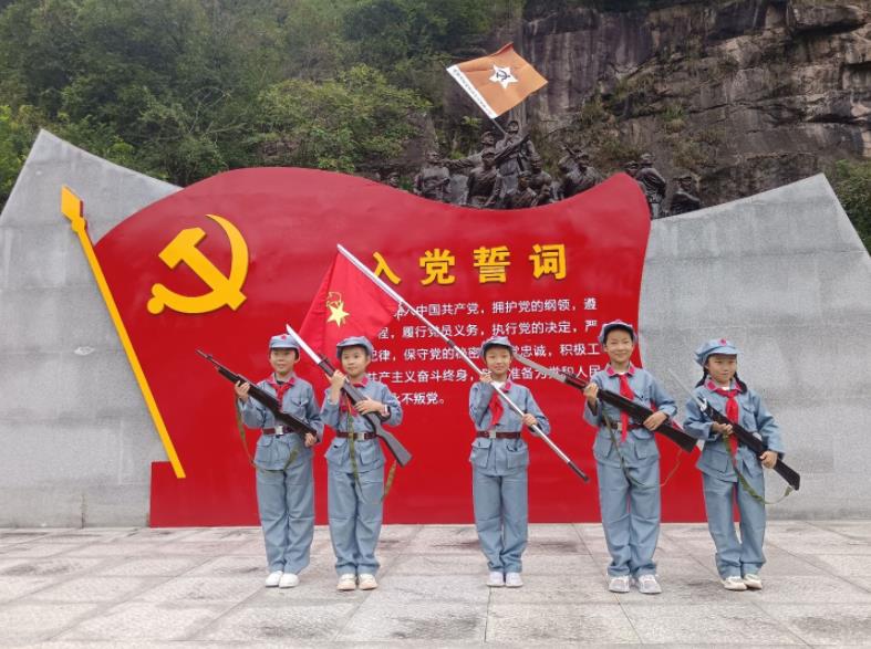 秋日的晨光温柔地洒在浙中大地,永康方山口在青山环抱中显得格外庄重。在国庆来临之际,江滨小学辰星中队的队员们身着整齐服装,怀着崇敬的心情整装待发。"重走红军路,童心庆华诞"红色研学活动在嘹亮的入队誓言中正式开启。这是一次跨越时空的对话,更是一堂生动而深刻的爱国主义教育实践课。
