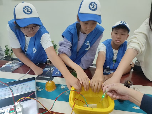 在老师的指导下,每位小记者都亲身体验了操作,真切理解了“单向火线不伤人,进水防触电”的安全理念。