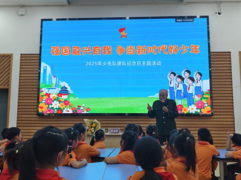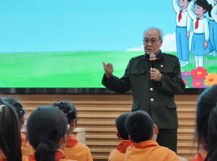 为厚植少年儿童的爱国情怀,传承革命先辈的红色精神,全国关心下一代先进工作者、全国百姓学习之星、全国最美五老杜志荣爷爷受邀走进宾虹小学,为二年级的师生上了一堂“穿越时空”的思政课。