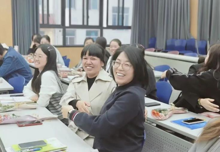 活动伊始,一束鲜花、一段轻音乐,瞬间将老师们从高压工作状态中抽离,温馨放松的氛围悄然弥漫。在汪升慧、楼晓菲两位老师的精心设计下,班主任们先后参与了“鲜花朵朵开”“身体五部位打招呼”“无声生日排序”“大风吹”“我是几个人来的”等游戏,大家或围圈抱团、或创意互动、或肢体协作、或换位抢凳。在锻炼反应力、考验默契度、强化团队配合的同时,也在阵阵笑声中拉近彼此距离,释放久违童真。老师们暂时卸下工作疲惫,沉浸在游戏的快乐里,脸上满是轻松的笑容。