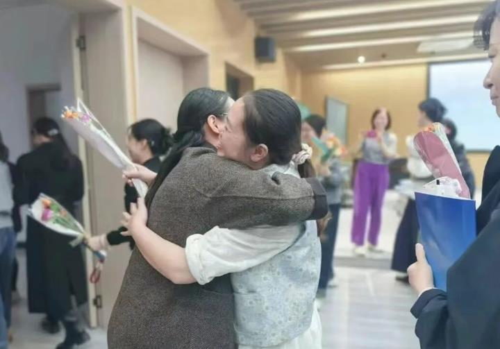 活动尾声,章建兰校长和王庆副校长为每一位班主任送上温暖而有力的拥抱。无需过多言语,关怀与支持透过掌心的温度、臂膀的力量直抵人心,为这场充满活力的“充电之旅”画上圆满句号。