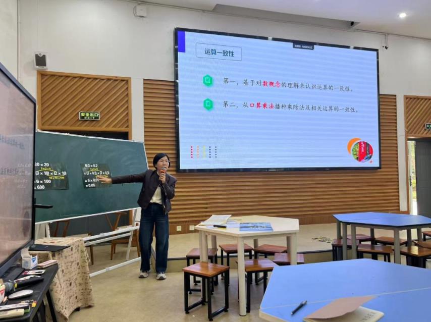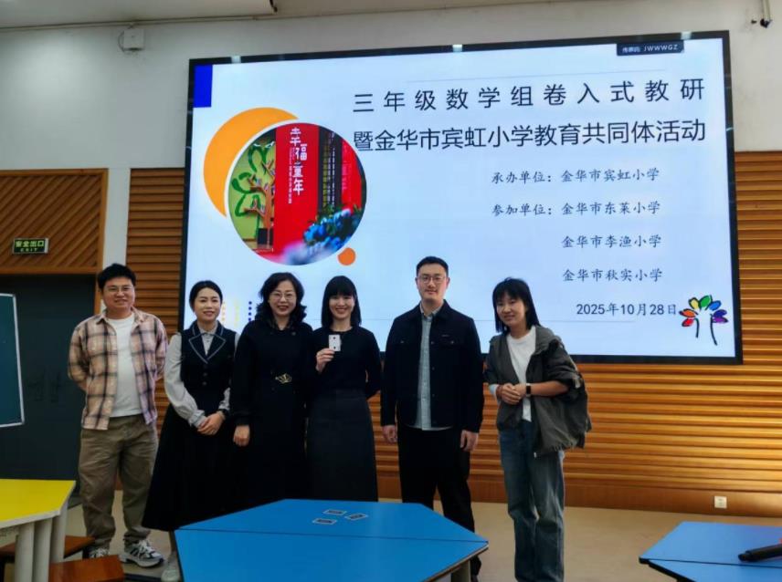 秋意渐浓,教研花开。10月29日上午,金华市宾虹小学的校园里,一场别开生面的数学教研活动正如火如荼地展开。此次活动依旧采用了别致的“卷入式教研”形式。更值得一提的是,来自重庆市荣昌区的骨干教师代表团也齐聚一堂,与宾虹小学数学组的老师们共同见证了这场基于“运算一致性”的思维碰撞。
