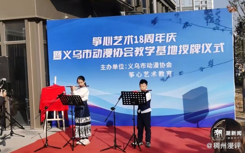 12月7日上午,义乌后宅街道黄龙悦府小区内弦歌阵阵、笑语盈盈,筝心艺术18周年庆典暨义乌市动漫协会教学基地授牌仪式在此隆重举行。这场集艺术展演、民俗体验与教学合作于一体的活动,不仅展现了筝心艺术十八年的深耕成果,更搭建起传统文化与动漫艺术交融的新平台,吸引了众多市民与学员家庭参与。