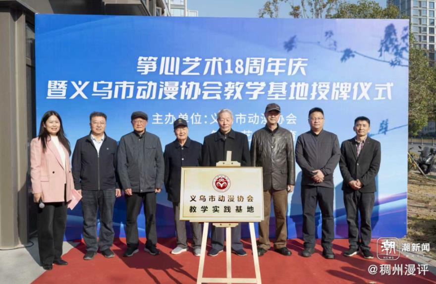 义乌市动漫协会会长与筝心艺术负责人共同为教学基地揭牌,标志着教学基地迈入实施阶段。