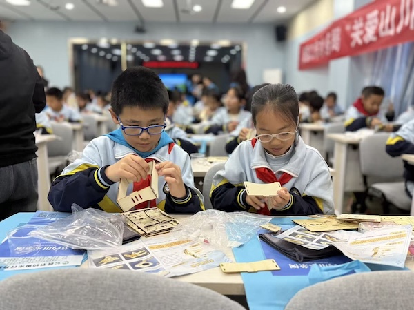 “科学实验DIY手动抽水机”环节将活动推向高潮。同学们在志愿者指导下,专注组装零件,体验科学魅力。莘瑞宝副局长与张红梅校长也加入其中,与师生协作完成实验。当抽水机成功运转,现场响起阵阵欢呼,每一滴水的珍贵被深深铭记。