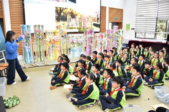上海尚阳外国语学校桐乡丰子恺学校李妍老师带着二(3)班的孩子一起《非遗寻味——花式茶果》。课堂上,李老师以 “点心魔术” 趣味导入,引导学生观察、品尝、动手揉捏塑饰,学习茶果造型装饰技法,创作专属且赋有寓意的作品,让学生体会中华饮食文化雅趣,激发传统文化热爱与传承之心。