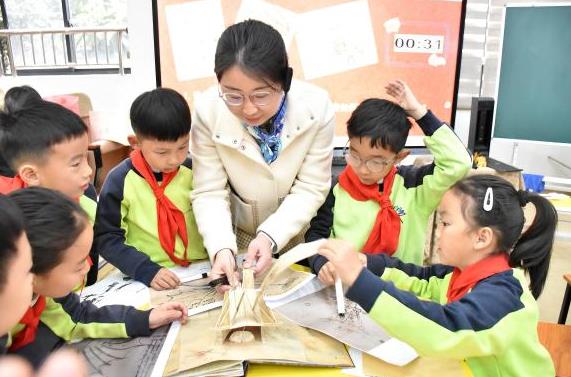 “来,用这片树叶,打出春天的节奏。”嘉兴海盐县三毛小学赵芳老师带着二(4)班学生,结合《小红帽》绘本进行角色体验,一堂《森林之歌》变成沉浸式音乐剧场。
