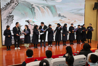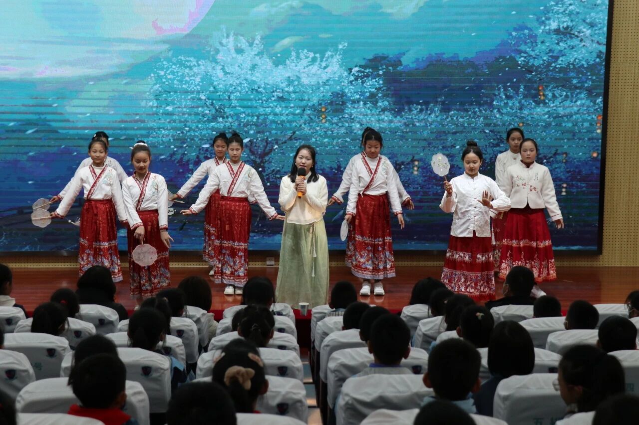 架子鼓表演《鼓舞中国》,小小的鼓手大大的力量,他们用激昂的节奏,敲击出“长安少年游侠客,夜上戍楼看太白”的豪情。高波老师的《诗歌联歌》,歌声悠扬,余音绕梁,回荡在湖居小镇上方。舞蹈表演《盛世长安》,同学们用优美的舞姿,为我们舞出盛唐的气韵,开启诗意的旅程。 语文组的老师们带来诗朗诵《诗韵长安,师者风华》,让全体师生听到了语文的魅力、师者的风范以及他们心中风华的模样。