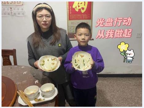 学校还把“光盘行动”走出校园,走进千家万户。“家校共践光盘”活动中,家长拍下孩子家庭光盘瞬间在班级群分享;副校长申展的话道出“家校光盘齐行动”的初心:“要让光盘意识融入日常,养成物尽其用的好习惯。”
