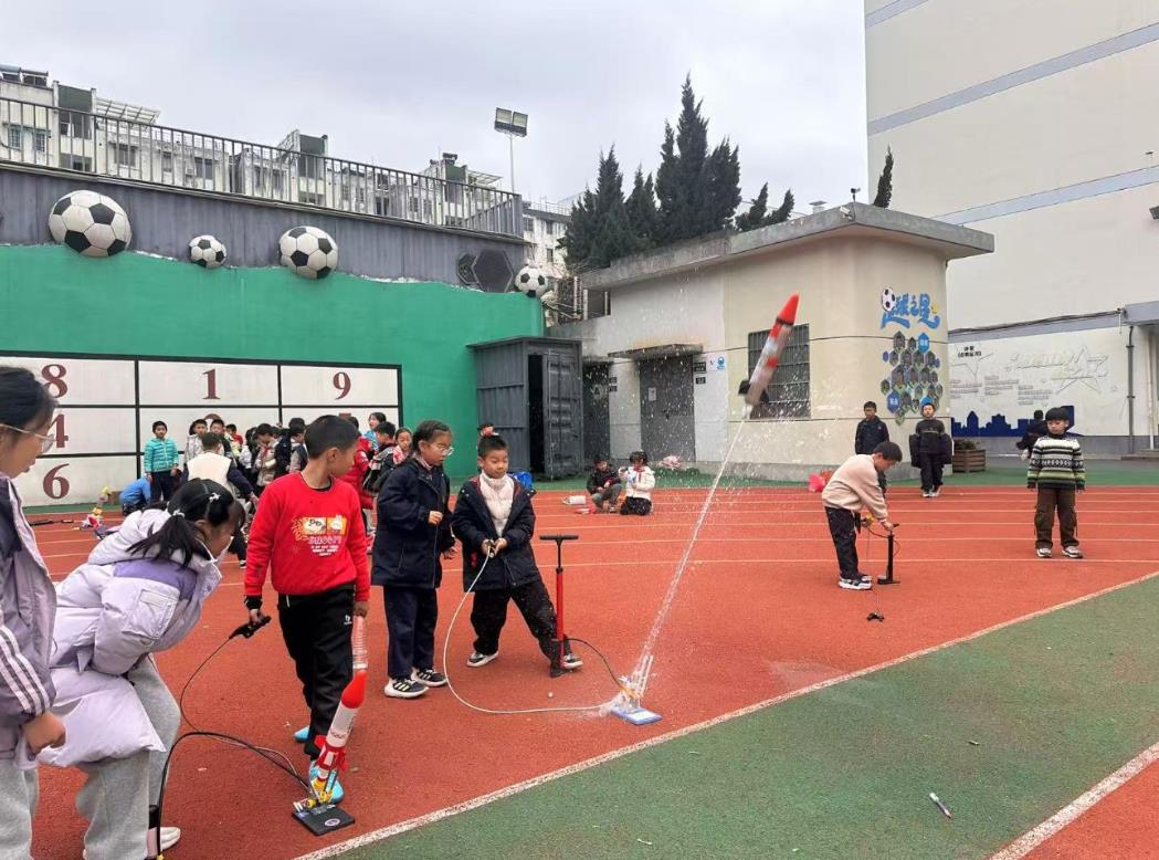 校级发射比赛现场更是精彩纷呈,一只只水火箭借力腾空,直冲云霄。孩子们在动手实践与竞技体验中,不仅吃透了气压驱动的科学知识,锻炼了动手能力,更在团队协作中培养了科学探究精神。这场水火箭挑战赛,既是孩子们逐梦蓝天的科创舞台,更是他们叩响科学大门的生动一课。