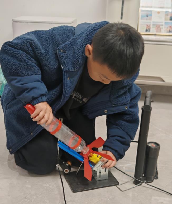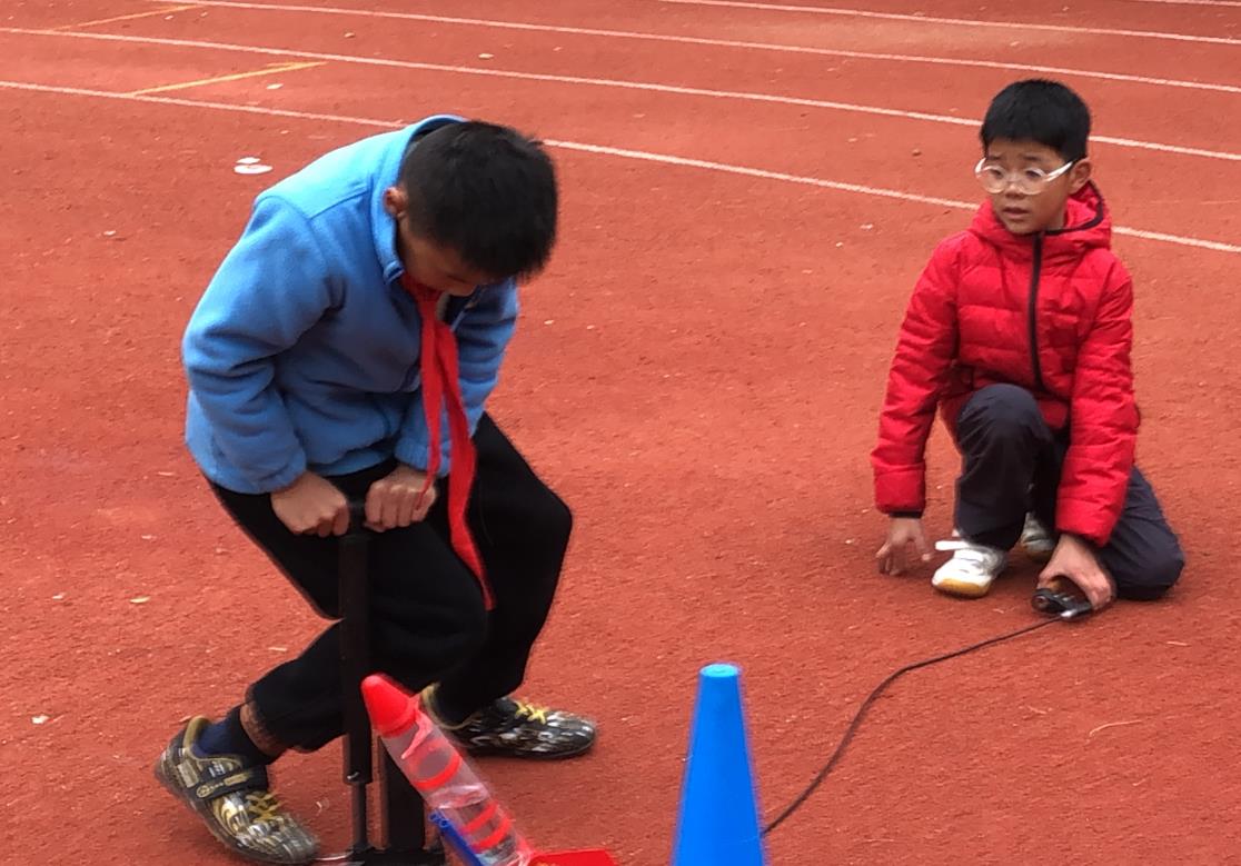 一个星期前,同学们学习了相关的知识,迫不及待地开始制作水火箭,他们有的找来废弃的饮料瓶,泡沫板,打气筒等等,在科学老师的指导下,一次次尝试、改进,终于完成了。