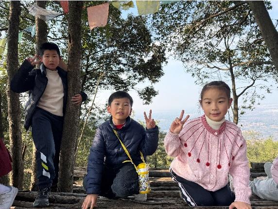 山路渐陡时,部分队员开始气喘吁吁,脚步也慢了下来。“加油!再坚持一下,山顶的风景超美!”吴怡霖伸出小手拉起同伴,小队成员们互相搀扶、彼此鼓励,没有人叫苦退缩。有的帮忙分担背包,有的分享零食和水果,欢笑声和加油声在山间久久回荡,成了最动人的新年序曲。