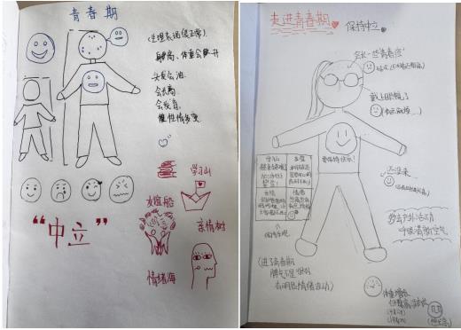 课堂伊始,“看字说颜色”暖身活动迅速点燃氛围,“大脑的神秘任务”引发同学们对青春期的热烈讨论。通过科普视频、“青春身体画”自我观察、小组分享等环节,大家勇敢交流身体与心理的变化,明白了第二性征出现、情绪波动等都是正常现象,学会接纳个体差异,放下羞涩与焦虑。