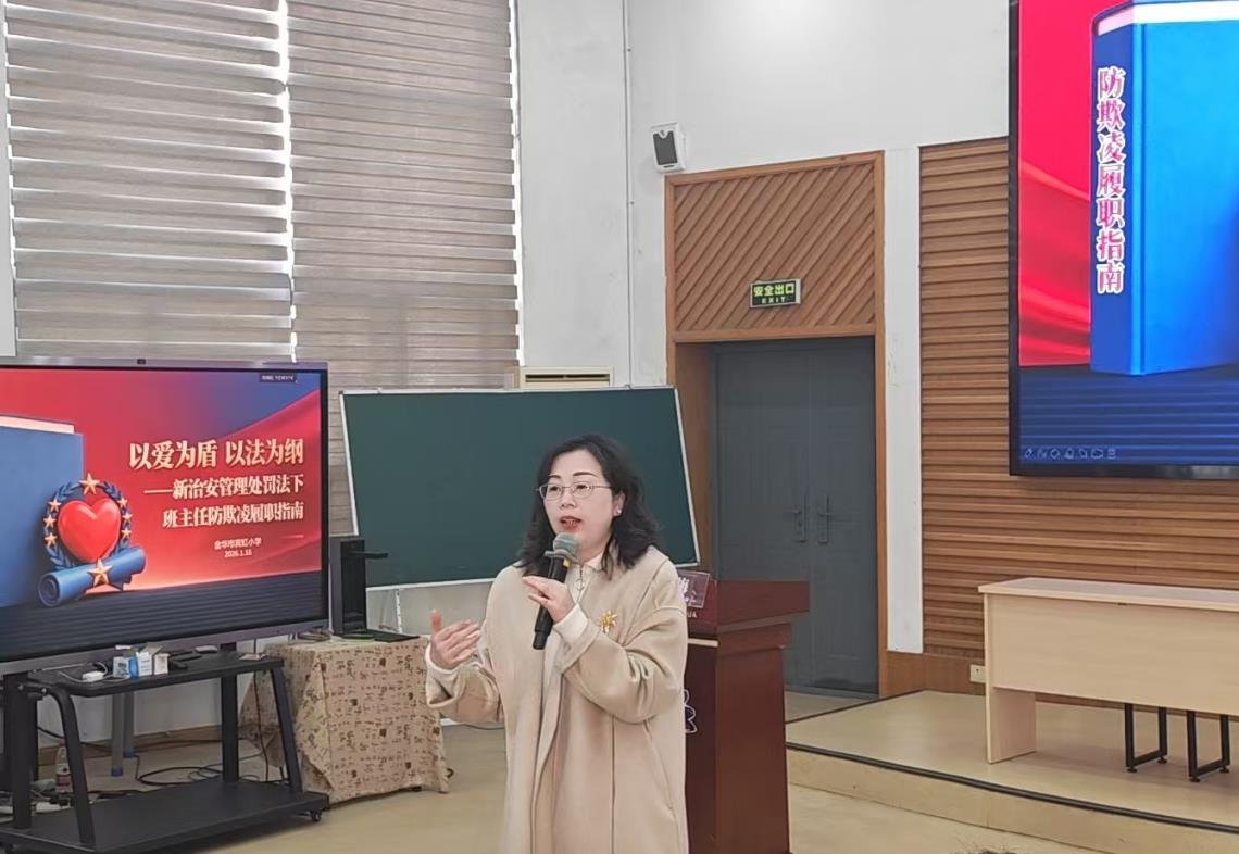 近日,浙江省金华市宾虹小学法治副校长、婺城区人民法院婺北法庭周俊梅法官,为全体班主任带来了一场聚焦 “防欺凌履职” 的专题指导。她从新修订的《治安管理处罚法》出发,结合真实案例,为我们梳理出一套 “爱法结合、防治并重” 的班主任工作指南。