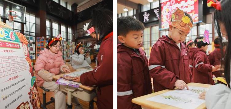 一年级的小萌娃们化身“小马探险家”,在语文关卡中开启了一场奇妙的语言之旅。“萌马跳音·拼音小冒险”里,孩子们抽取拼音卡片,准确认读声母、韵母与音节,用清脆的声音解锁与吉祥物玩耍的入场券;“福骥藏珍·字词欢乐营”中,重点生字与马年主题词语卡片轮番登场,孩子们洪亮认读,用扎实的积累兑换与吉祥物合影的资格;“喜马传情·吉祥话小剧场”更是暖意融融,孩子们手持祝福卡,大方说出“马年吉祥,学业进步”“骐骥驰骋,快乐成长”等暖心话语,把马年的美好祝福传递给身边人。