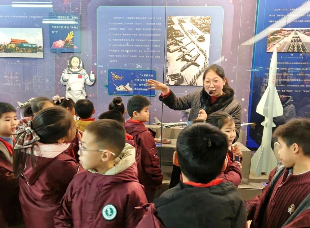 “守卫蓝天·空军崛起” 展区,歼 - 10、歼 - 20 等战机模型帅气亮相;“铁血强军·陆军雄风”展区,99A 坦克、东风导弹车霸气十足;“水上利刃·海军突击” 区,辽宁号航母模型气势恢宏,仿佛能看到海军将士驰骋深蓝的身姿。探秘大国重器,领略科技魅力,不仅让“挺起民族的脊梁”不再是抽象的字句,更在他们心里种下了珍惜和平、立志报国的种子。