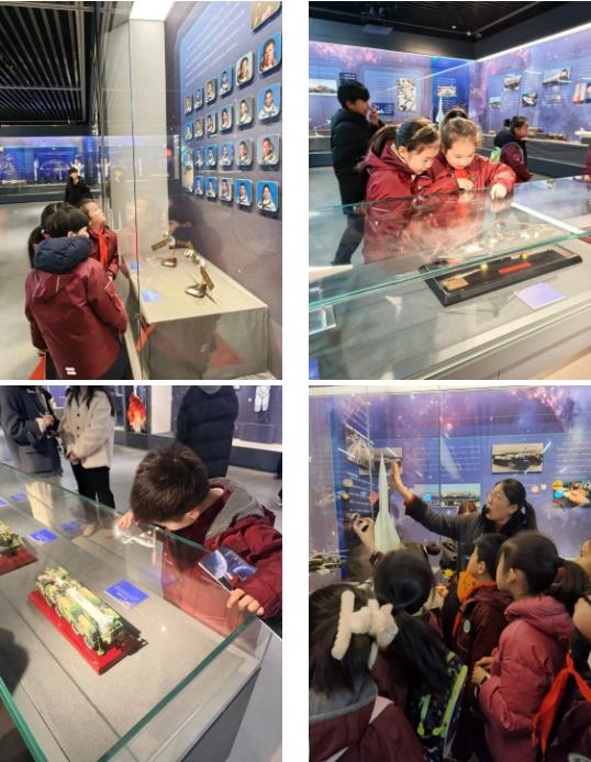 当讲解员缓缓展开人民军工近百年的奋斗长卷,队员们的神情也变得肃穆,仿佛穿越回那段艰苦却热血的岁月,真切感受到先辈们为航空事业拼搏的不易。从 “东方红一号” 划破天际,到 “嫦娥” 探月、“天问” 探火。两弹一星元勋的幕后故事,“干惊天动地事,做隐姓埋名人”的奉献精神让全场肃然起敬。书写着一段中国航天从无到有、从弱到强的辉煌历程,见证了“九天揽月”的豪情。长征火箭家族、中国空间站、天和核心舱、玉兔号月球车、祝融号火星车模型依次排开……从近地轨道到深空探测应有尽有。今天大家在这里都可以一饱眼福,深刻感受到中国航空航天的辉煌成就!