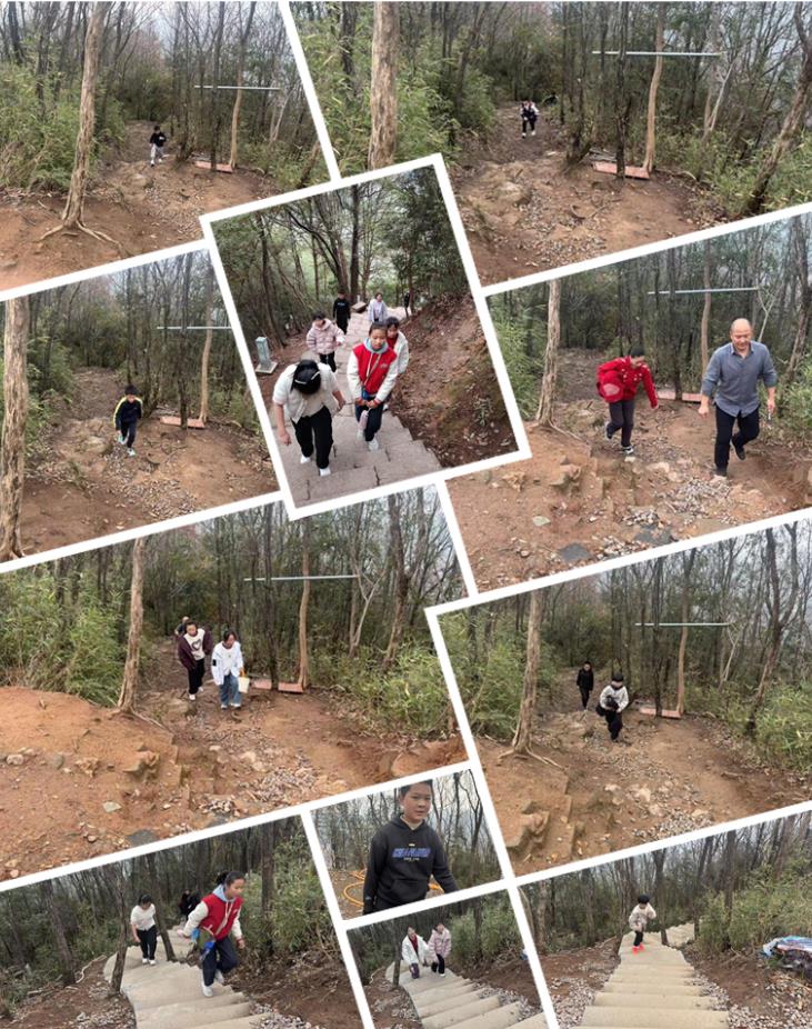 随着一声清脆的发令声,登山比赛正式拉开帷幕。小蚂蚁中队的同学们带着少年的昂扬斗志与小蚂蚁的坚韧执着,向着山顶奋力进发。山间林木葱郁,鸟鸣阵阵,泉水叮咚,徐霞客曾在此留下“与太虚同游”的感叹,如今,这群属马少年循着山间步道前行,既有“会当凌绝顶,一览众山小”的豪情,亦有小蚂蚁脚踏实地、步步为营的沉稳。不同于往年的稚气懵懂,恰逢马年,已是六年级的他们,步伐愈发坚定,呼吸愈发平稳,即便遇上陡峭路段,也未曾有一人轻言放弃——有人相互搀扶、轻声鼓励,有人调整节奏、稳步前行,有人咬紧牙关、奋力冲刺,每一个身影都彰显着属马少年的勇毅,也藏着“小蚂蚁”“不抛弃、不放弃”的坚韧品格。