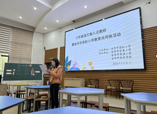 活动伊始,宾虹小学朱艳文校长现场抽签,确定由黄悦老师执教本次教研课。在热烈的掌声中,黄老师从容登台,带领六(1)班的孩子们走进两千多年前那场充满童趣与哲思的辩论——《两小儿辩日》。
