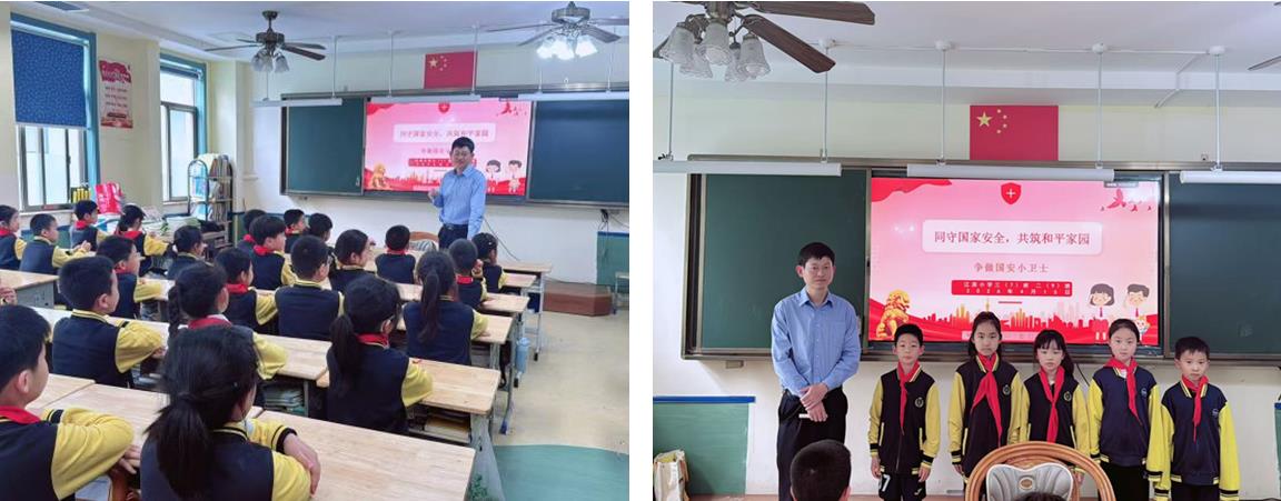 2026年4月15日,是我国第十一个全民国家安全教育日,为深入开展国家安全教育,引导小学生树立国家安全意识,厚植爱国情怀,珍惜和平生活,金华市江滨小学三年级(7)班和二年级(9)班的孩子们迎来了一堂特殊而又充满意义的课程。石若辰同学的爸爸走进课堂,为两个班的同学开展了以“同守国家安全,共筑和平家园——争做国安小卫士”为主题的专题讲座,用通俗易懂、互动趣味的形式,为孩子们送上一堂生动的国家安全启蒙课。